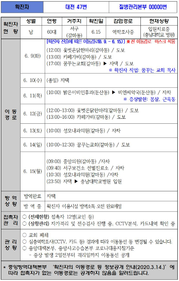 대전에서 코로나19 바이러스 추가 확진자 3명이 나왔습니다.