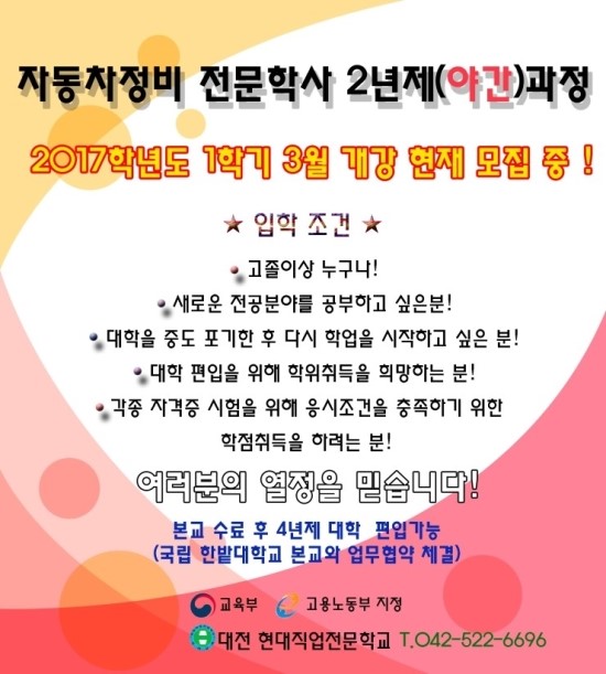 자동차 전문 직업학교 = 대전 현대직업전문학교 꼭 기억해두고 도전해보세요!