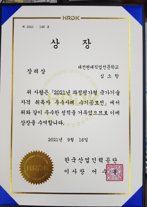 2021년 과정평가형 국가기술자격취득자 우수사례 수기공모전 입상을 축하합니다