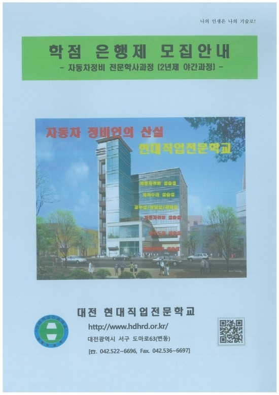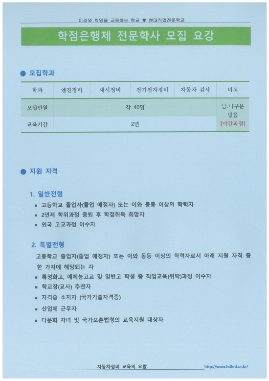 안녕하세요. 대전 현대직업전문학교입니다! 오늘은 2017년 자동차정비 전문학사과정 학점은행제 모집안내를 해 드리려고 합니다!