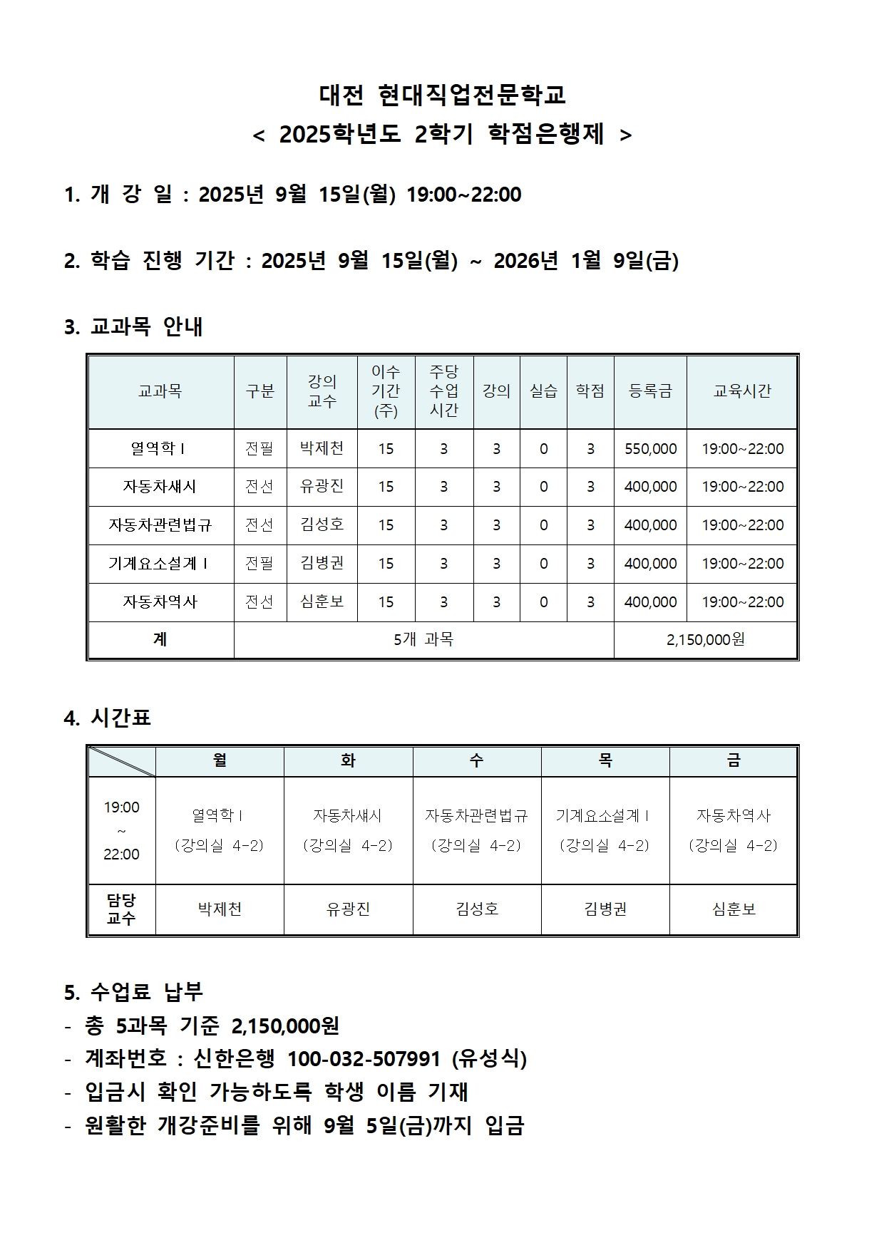 2025년 2학기 학점은행제 개설과목