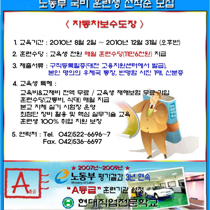 노동부 국비훈련생 선착순 모집(자동차보수도장)