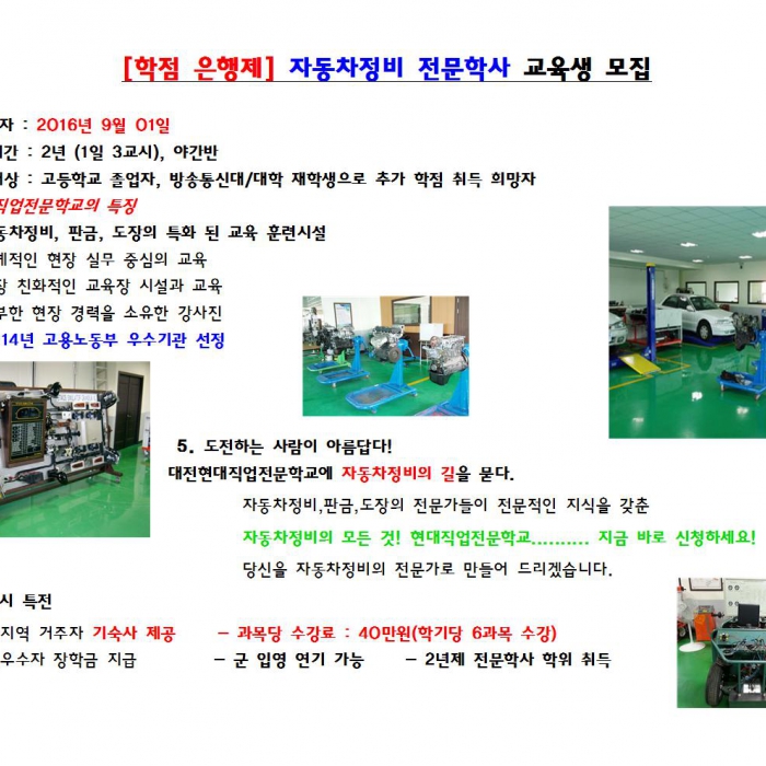 : 2016년 9월1일 [전문학사] 자동차정비 교육생 모집