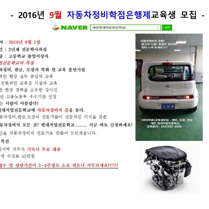 2016년 9월1일 [전문학사] 자동차정비 교육생 모집
