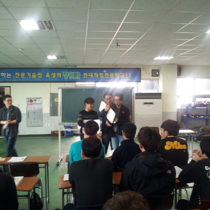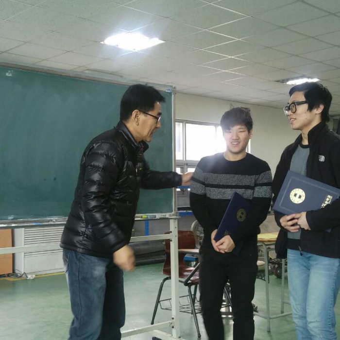 오늘 교육이사님께서 26기 차체수리반 학생 중.. 준기와 동인이.. 장학금 전달식이 있었습니다.